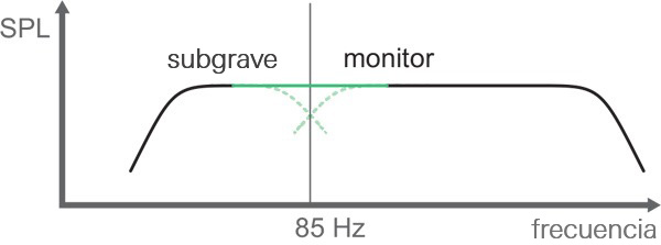 Los subgraves activos de la serie 7000 de Genelec disponen de un filtro crossover ajustado a 85 Hz. Las frecuencias más elevadas son reproducidas por los monitores.