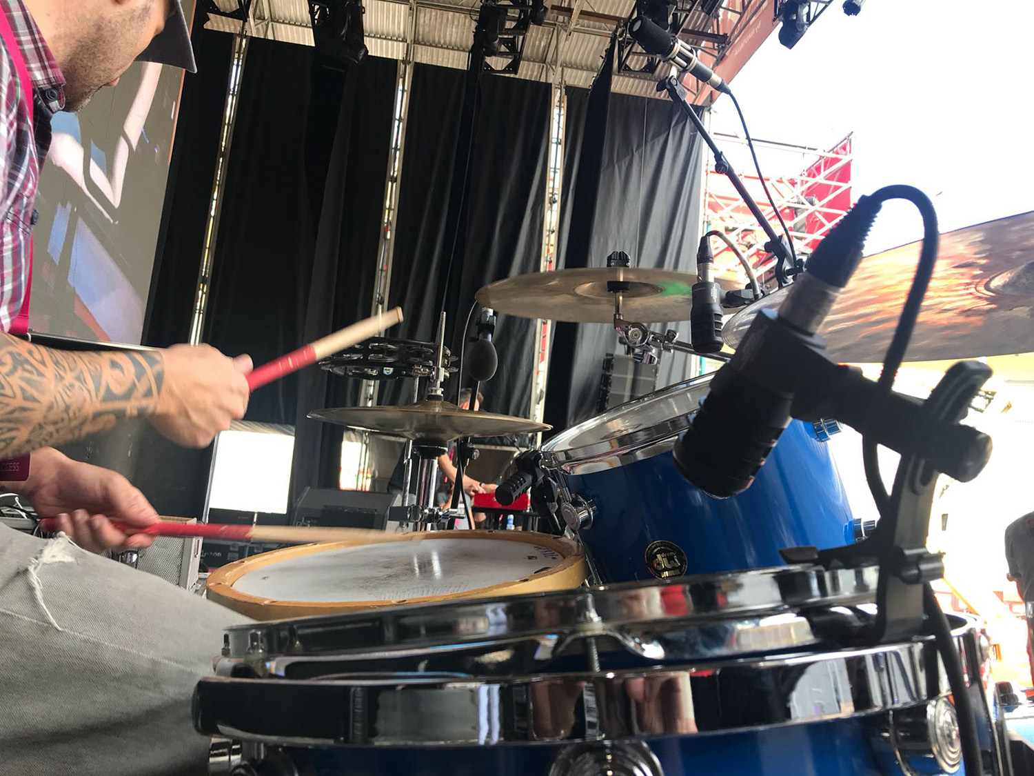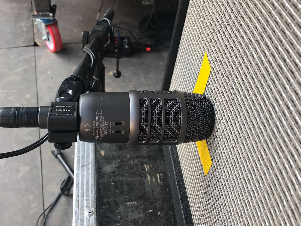 La microfonía de Audio-Technica se usó principalmente para voces, batería y amplificadores de guitarras, siendo estos los modelos seleccionados: Kit ATM230PK, AE2500, AT5045P, AE5100 y ATM610a.