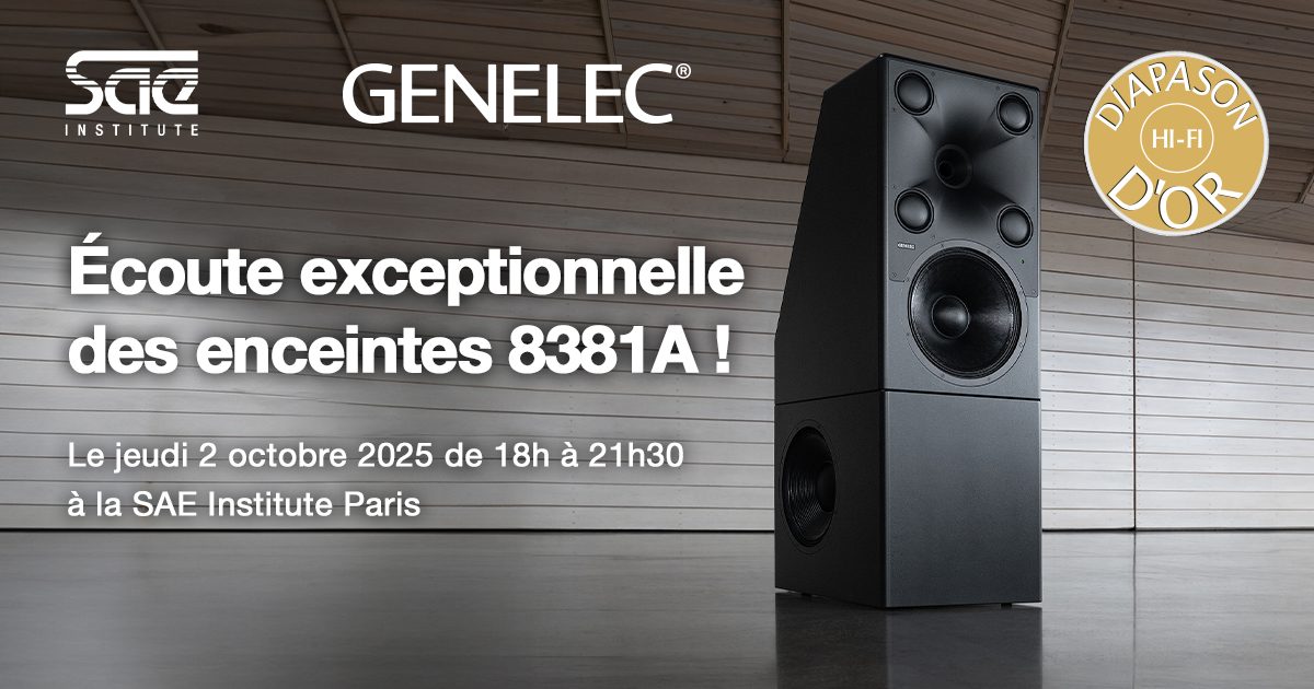 Rejoignez-nous le 2 octobre 2025 à la SAE Institute Paris pour une soirée d’écoute exclusive autour des enceintes Genelec 8381, en collaboration avec le magazine Diapason.